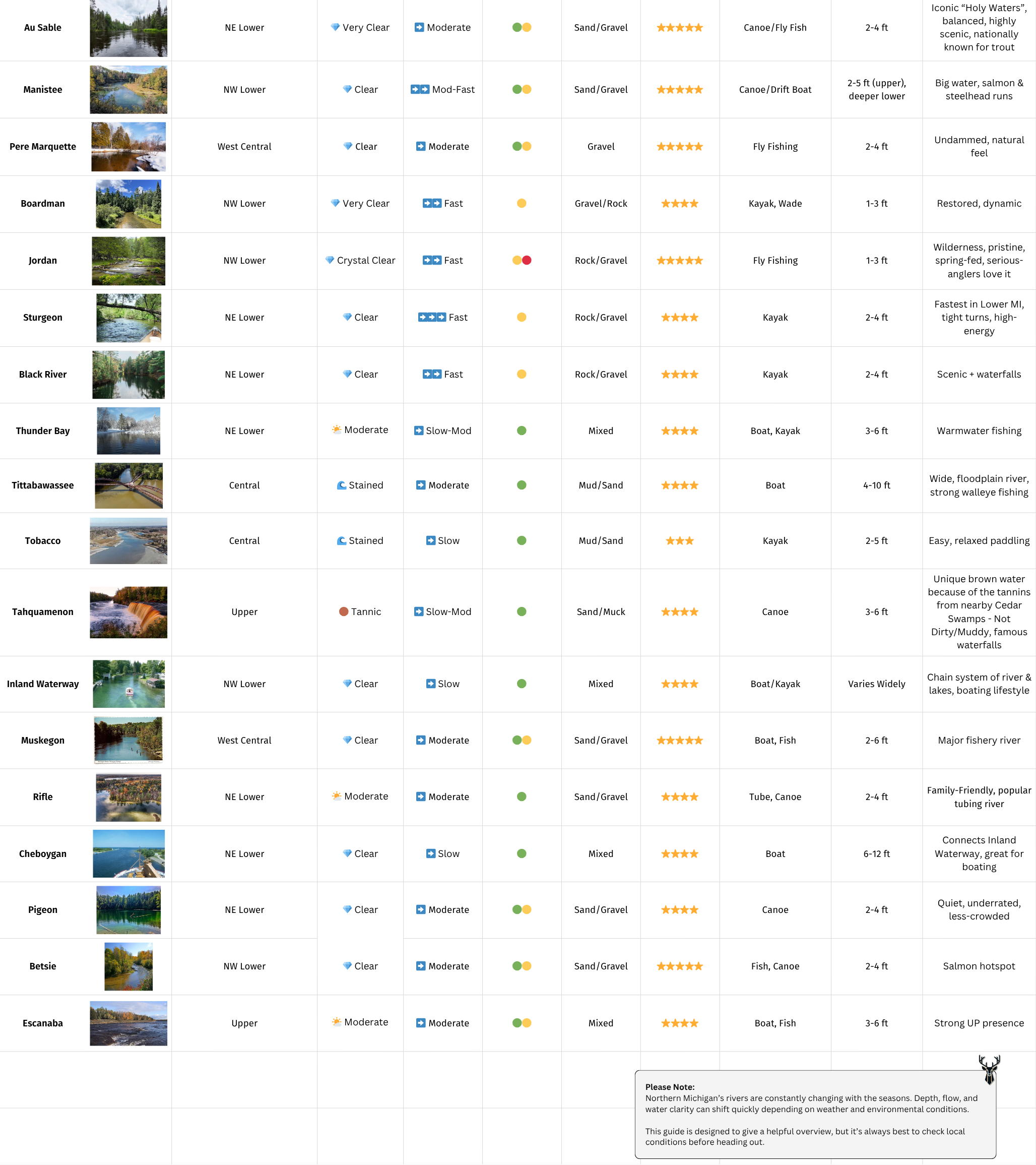 A local perspective on Northern Michigan’s most popular rivers—built to help you explore, experience, and understand the lifestyle each one offers.